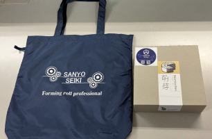 As a souvenir of their visit, we gave a tote bag and a Baumkuchen cake to take home.